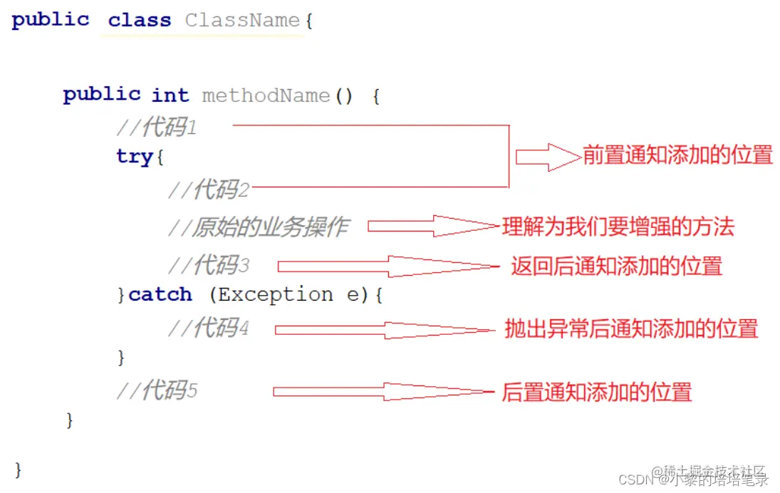 (5) 通知是一个方法,方法不能独立存在需要被写在一个类中,这个类我们也给起了个名字叫通知类