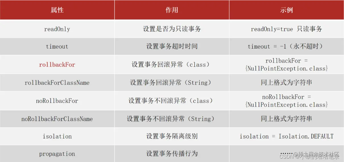● noRollbackForClassName等同于noRollbackFor,只不过属性为异常的类全名字符串