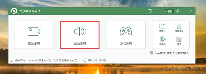 第1步:下载并安装数据蛙录屏软件,确保您已成功启动软件。打开软件后,您可以看到主界面上的音频录制模式,我们点击进入。