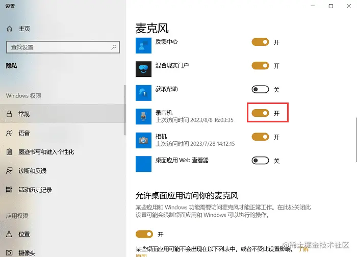 第1步:打开 “开始” 菜单,搜索并选择 “录音机” 程序。在录音机界面中,右下角可以打开麦克风设置,在里面打开录音机的麦克风。