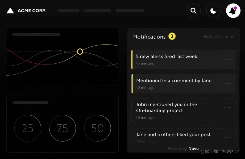 novu 是一个通知库,它提供了统一的 API,让多个渠道发送通知变得简单,包括应用内、推送、电子邮件、短信和聊天。使用 novu,你可以创建自定义工作流程,并为每个渠道定义条件,确保以最有效的方式传递通知。