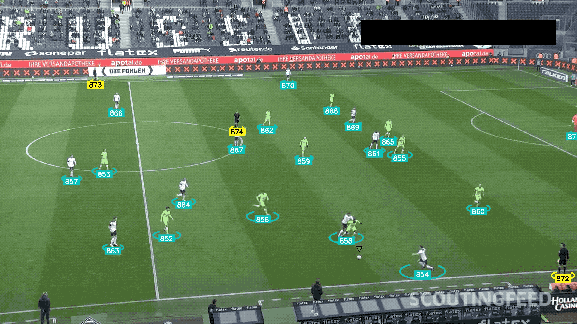 New supervision 可用来编写复用的计算机视觉工具,你可以从硬盘中加载数据,对图像或者是视频进行测绘,或者是统计某区域的被检测数量。如下图所示,你可以用来跟踪足球赛的球员,并对跟踪对象进行标注。