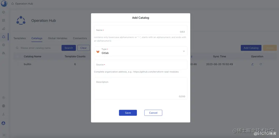 在最新版本中新增 Catalog,它全面兼容原生的 Terraform Module 仓库管理模式,用户可一键复用 Terraform 社区上万个成熟的 Module,自定义应用所需的服务模板。另外,Catalog 也方便用户对服务模板进行统一管理和调用。