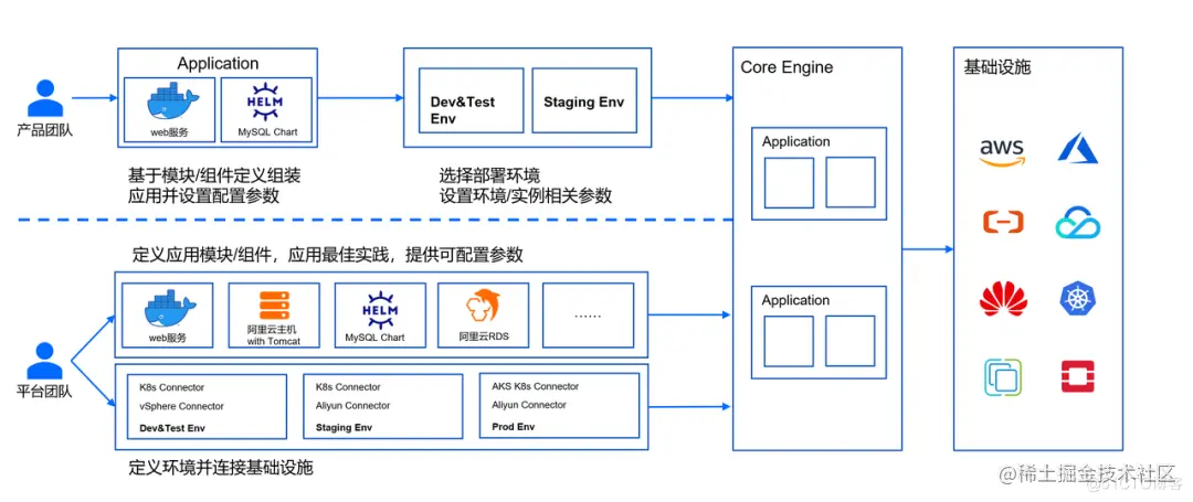 Walrus 通过提供灵活强大的应用和环境部署管理能力、可屏蔽基础设施的上层抽象,使研发人员能够在无需了解底层技术细节的前提下自助构建、部署和运行应用程序,减轻开发人员的认知负担。