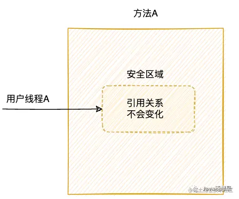 **安全区域是指能够确保在某一段代码片段之中,引用关系不会发生变化。**因此,在这个区域中任意地方开始垃圾收集都是安全的。我们也可以把安全区域看作被扩展拉伸了的安全点。
