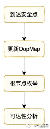 所以流程我们就清楚了:先是到达安全点,然后更新OopMp,然后进行根节点枚举,找到GC Roots,开始GC。