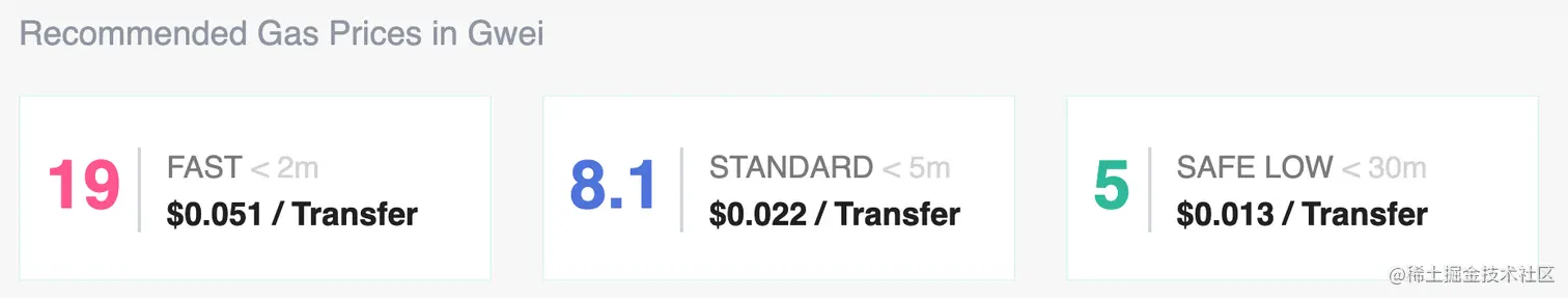 GasPrice 是一个 Gas 的单价,一般用 Gwei 来形象表示 ( 但注意实际在应用程序中都是使用 Wei ),GasPrice 由用户自己设置,其大小会决定交易被处理的速度。