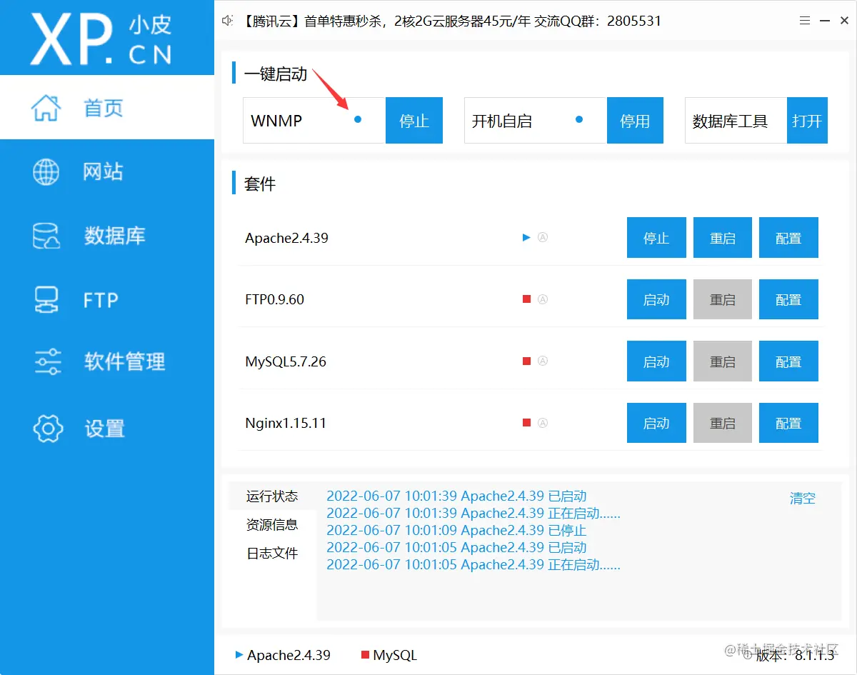 记得在首页先启动mysql