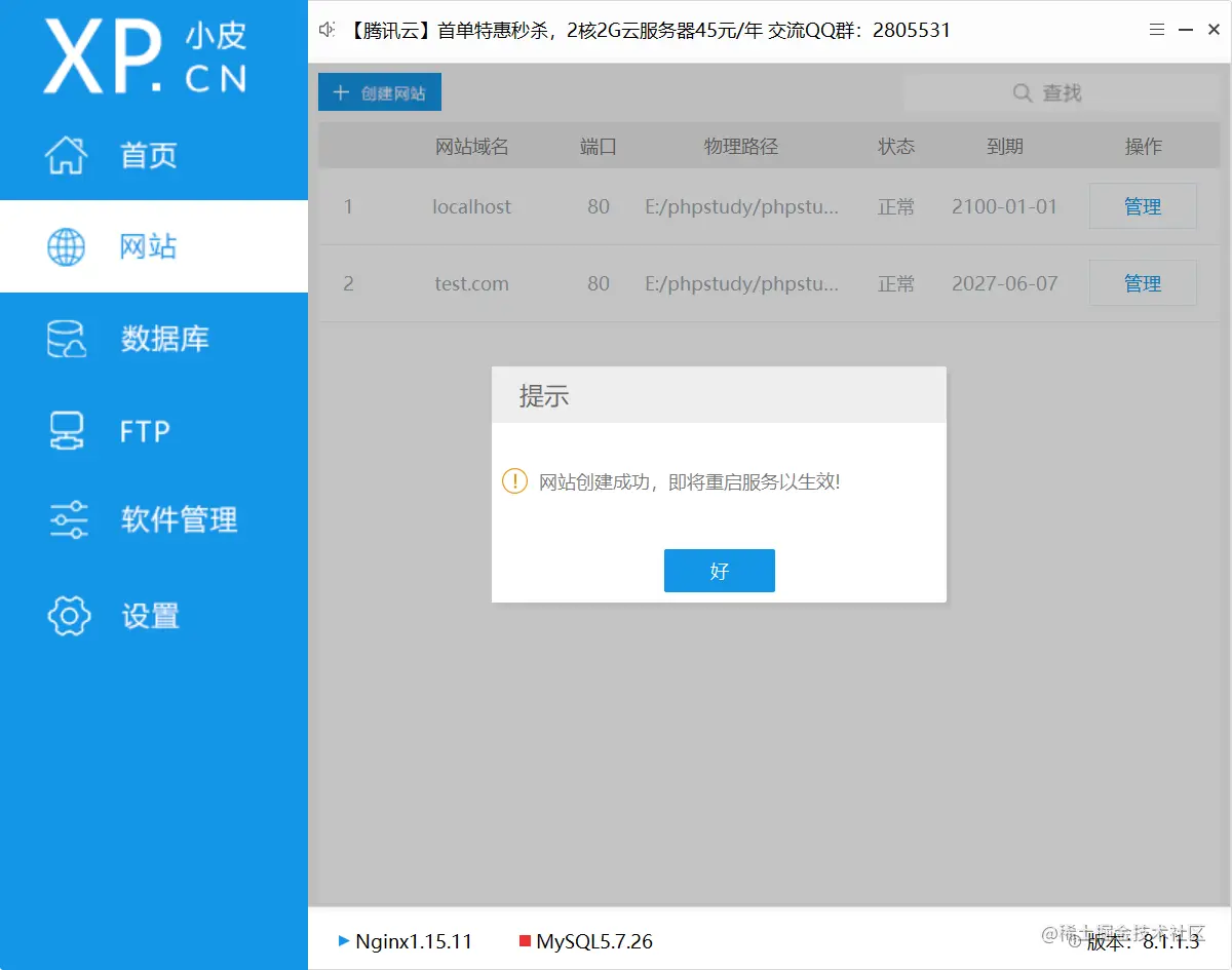 域名需要自己起,这里可以换php版本,然后可以确定了