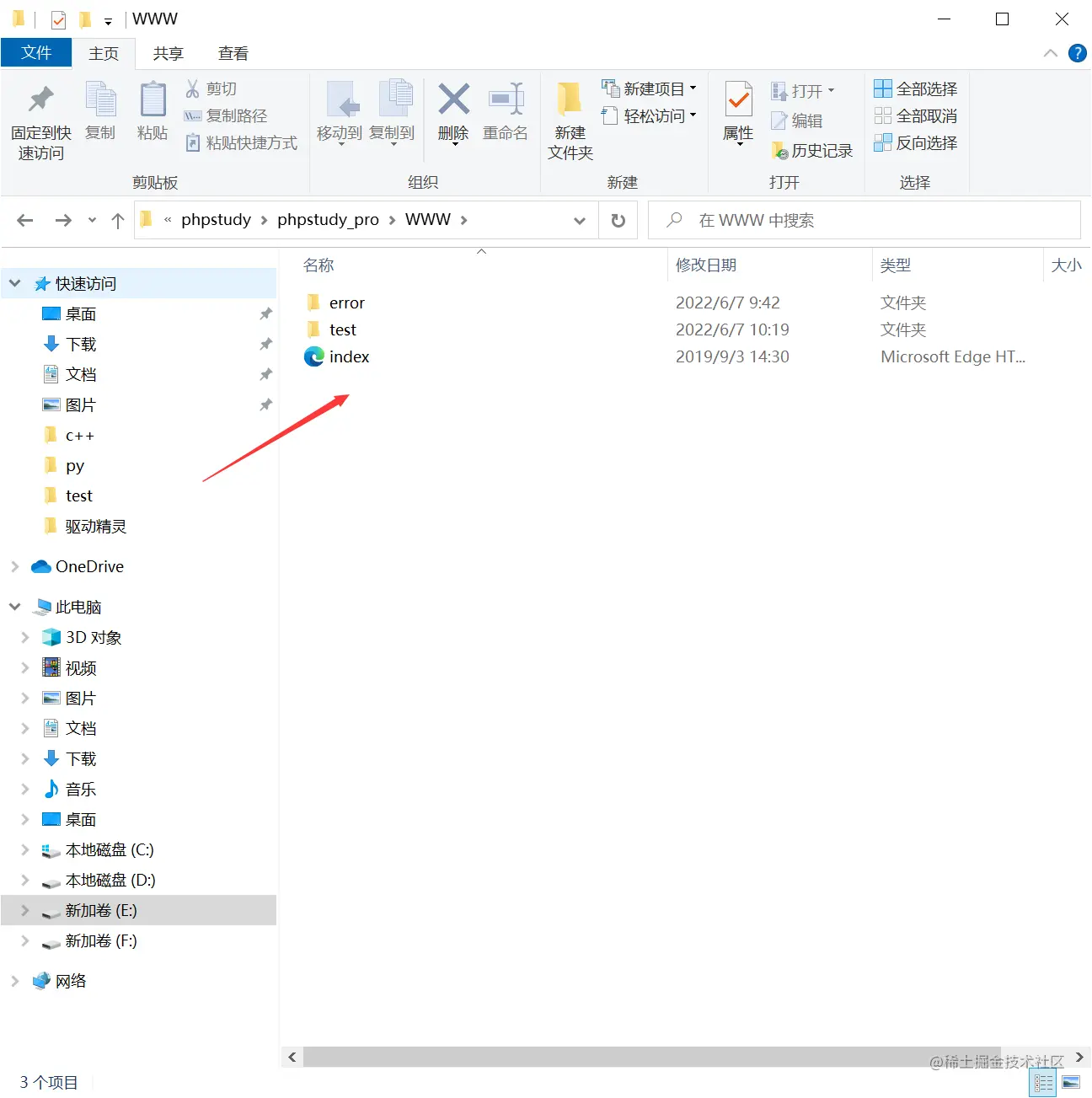 在地址栏输入 test.com/index.html看到这个
