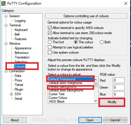 4.点击colours,分别设置前景色(字体色)和背景色(页面的颜色)