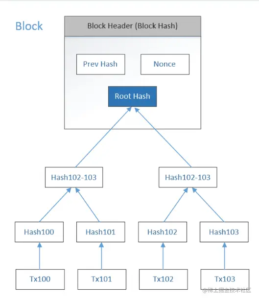 区块链中,为节省空间,只保存交易的哈希值,不保存交易本身的信息,哈希值对于校验来说足够了。