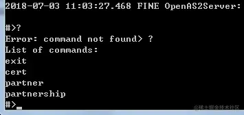 5.2 在成功启动之后,按 enter , 输入? openas2 有提供了几个命令查看服务器信息