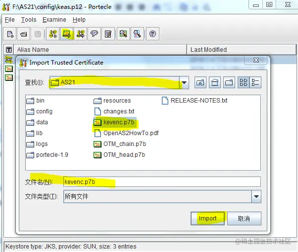 4.将对方的证书导入到秘钥库中,并保存秘钥库,到openas2 config目录下。