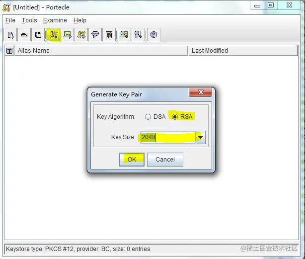 生成秘钥示例,以图形工具为示例,