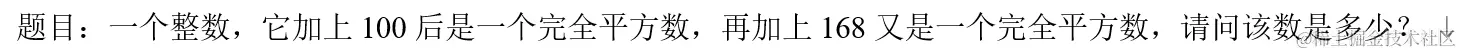 求解这一题的核心思想就是:完全平方数的算数平方根的平方等于他自身,我们假设这个数在1——1000,0000之间,所以从1遍历到1000,0000,在遍历过程中只要有满足条件的数,循环立即结束,最后当i等于1000,0000时,若还没有输出且返回值为-1,则说明这个数不存在或者至少可以说明这个数在1——1000,0000之间不存在,若有输出且返回值为0,则输出值就是这个数。(本人认为该题无答案,如有错误,期待掘友指出。)