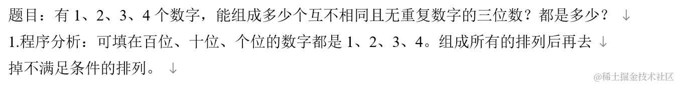 这时需要定义三个变量,用来存储个位数、十位数和百位数数字,利用for语句进行三次循环,当且仅当个位数、十位数、百位数上面的数字互不相同时,进行输出操作。代码如下所示: