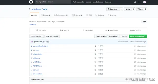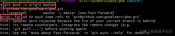 因为远程repository和我本地的repository冲突导致的,而我在创建版本库后,在github的版本库页面点击了创建README.md文件的按钮创建了说明文档,但是却没有pull到本地。这样就产生了版本冲突的问题