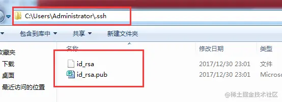在里边找到 id_rsa.pub文件,用记事本打开,复制其中的全部内容