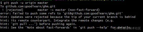 如果出现上传不成功,可能是因为你远程仓库已经存在文件,和你本地仓库文件不一致,或者你本地仓库的文件不是最新的,这个时候,你需要执行下面这行命令