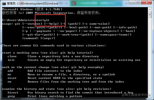 打开DOS窗口,输入git或者git –-version查看是否安装成功