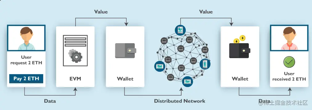 以太坊虚拟机(简写为 EVM)是执行智能合约代码的引擎。
