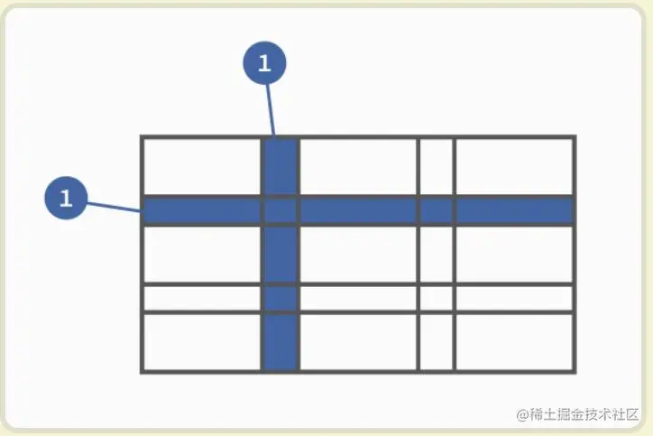 上图中,水平的深色区域就是"行",垂直的深色区域就是"列"。