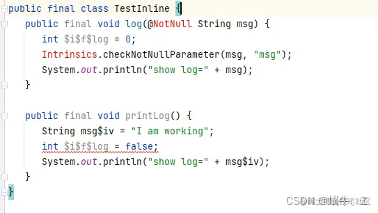 通过以上对比我们大概了解到内联函数的作用,其实对于我的分析,如果内联函数体很大,被到处引用,就会编译出特别多的多余代码,这个方式与方法的抽取调用有什么好处?目前我并没有发现这种方式的特别之处,唯一的好处就是在kotlin译码后,在结果中更方便阅读。