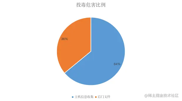 64% 的投毒组件为:获取主机敏感信息(获取了主机的用户名、IP 等敏感信息发送给恶意服务器)