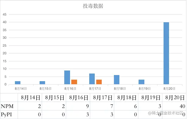 针对 NPM 、PyPI 仓库,共监测到 81 个不同版本的毒组件,其中 NPM 组件包 mall-front-babel-directive 等携带远控木马,该系列的组件包具有持续性威胁行为 。
