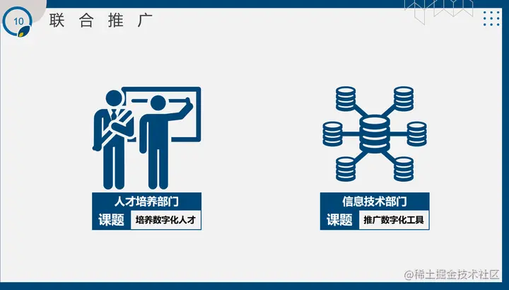 意识层面意识提升怎么做?我们会做理念培训,在公司内开讲座,办一些信息技术展、工作坊等,通过这些让员工以及各级管理者统一认知,知道这个工具其实能够给部门带来业务价值的。培训部门做这个推广工作其实还是有个好处的,因为我们这个项目是叫做无界共创数字化人才培养项目,除了数字化这个项目,很多其他的培养项目我也可以放在里面一起去推广。
