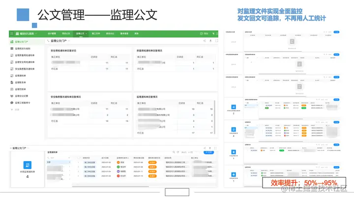 - 监理公文:通过明道云自动取号、打印模板和实现公文在线分发,提高了发文效率和管理效率。