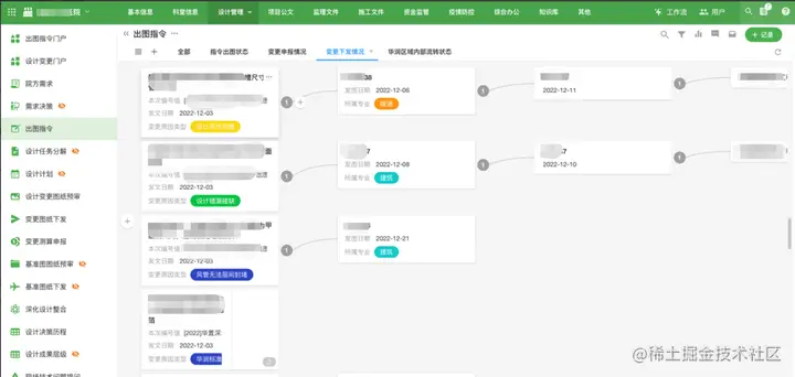 有了这个变更管理系统后,我们做了一些可视化的报表,可以看到每个月发出了多少个指令,图纸回来多少张,我们将这些数据报告给哪里了。这样,设计院的效率就会提高。因为他们知道我们可以看到,所以他们之前都比较积极。以前,我们发出一个指令时,他们可能只回应一半,现在基本上可以完成90%。