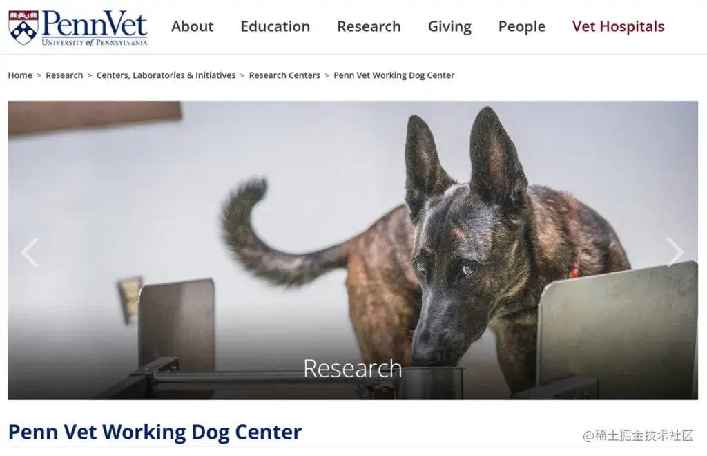 该研究作者 Elizabeth Hare 所属机构宾夕法尼亚州兽医工作犬中心 (Penn Vet Working Dog Center) 是工作犬领域的先驱,旨在推进最新科学发现和兽医专业知识的研究和应用,以优化气味探测犬的表现。该机构受 9·11 袭击事件时搜救犬的出色表现所启发,于 2012 年 9 月 11 日创立,成为国家搜救犬研究和开发中心。