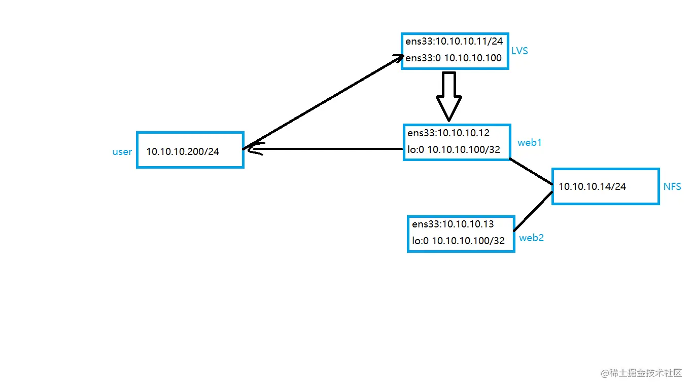 ipvsadm -a -t 集群IP:80 -r web1:80 -g