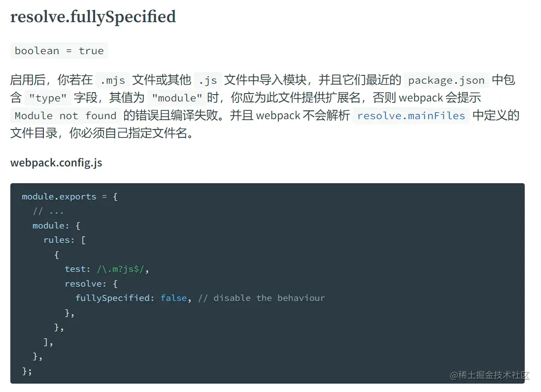 如果要去掉这个限制,只需要设置Rule.resolve.fullySpecified为false即可,具体看如下所示: