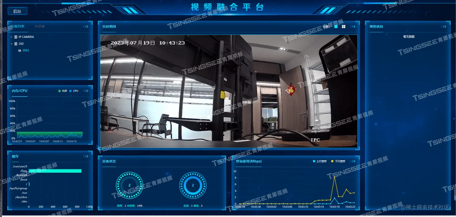 视频集中存储/云存储/视频监控管理平台EasyCVR能在复杂的网络环境中,将分散的各类视频资源进行统一汇聚、整合、集中管理,实现视频资源的鉴权管理、按需调阅、全网分发、智能分析等。AI智能/大数据视频分析EasyCVR平台已经广泛应用在工地、工厂、园区、楼宇、校园、仓储等场景中。感兴趣的用户可以前往演示平台进行体验或部署测试。