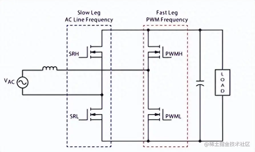 图 1:简化的图腾柱 PFC 拓扑结构