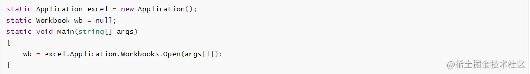 开始编写代码,实现基本的功能,C#打开Excel的Api,路径参数通过命令行传入: