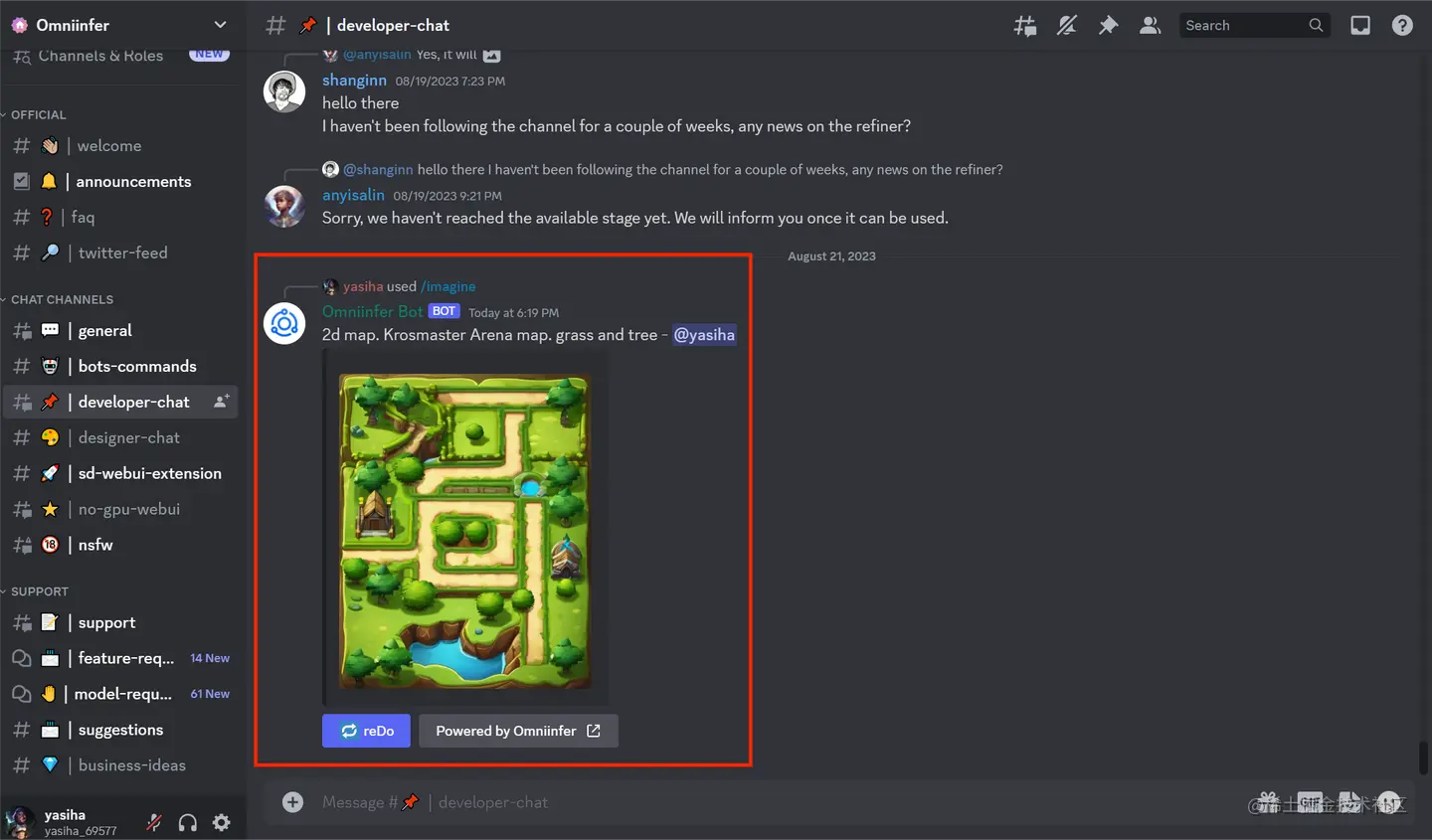 最后我以2D的Krosmaster竞技场地图这个例子来分享一下Omniinfer的No GPU WebUI和discord机器人生图操作路径,希望对你有所帮助。