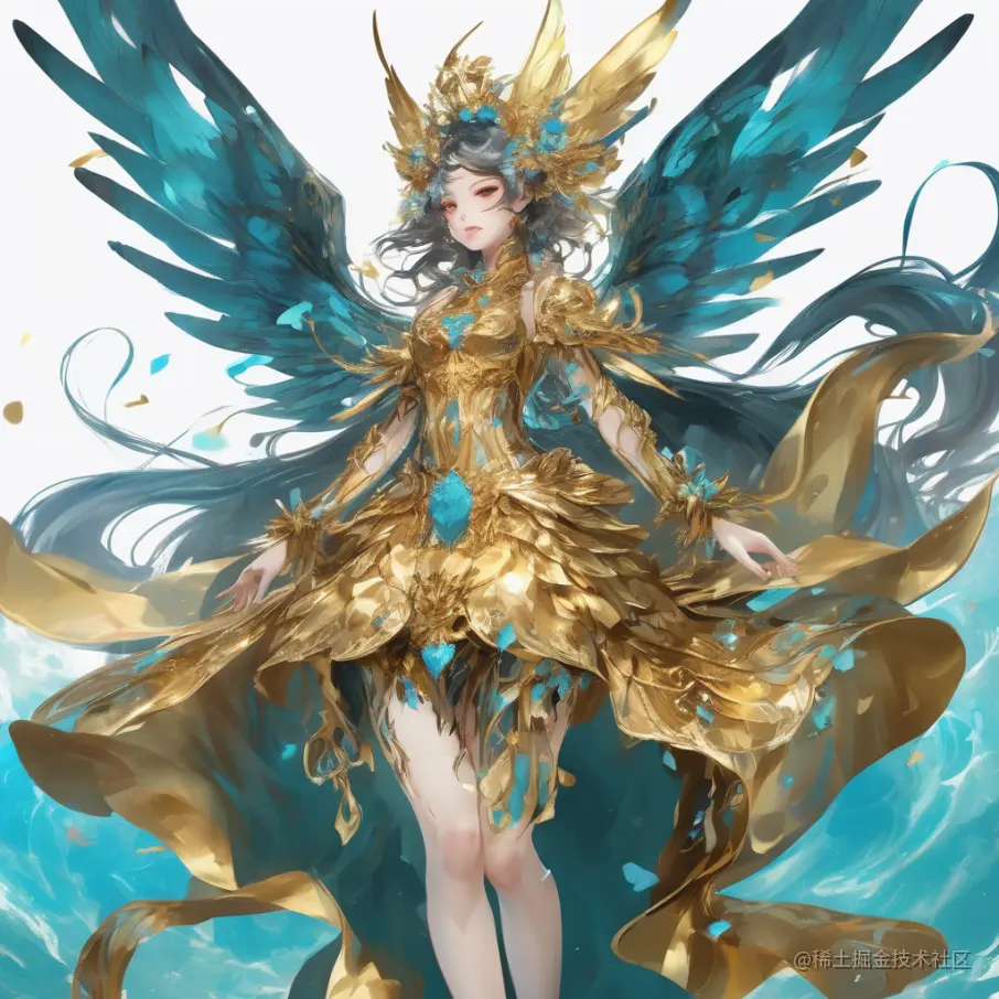 4. 一位穿着金色裙子和翅膀的女性角色