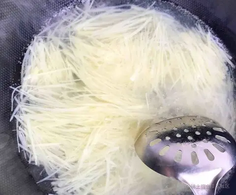2.土豆切丝后泡入水中,一、可去除淀粉,二、防止变色