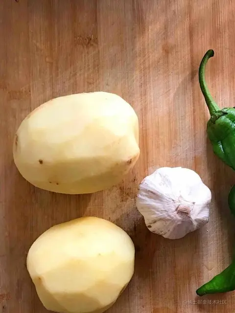 1.土豆2个,大蒜,青椒