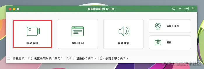 第1步:访问官方网站,下载并安装Mac版本的数据蛙录屏软件,打开进入主页,可以看到多种录制模式,包括视频录制、窗口录制、音频录制等。