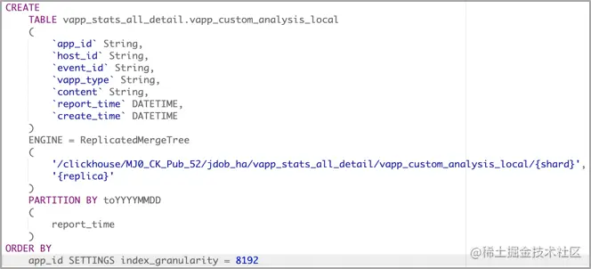 1.选择合适的表存储引擎:采用多副本的ReplicatedMergeTree,保证查询性能和数据存储的高可用;