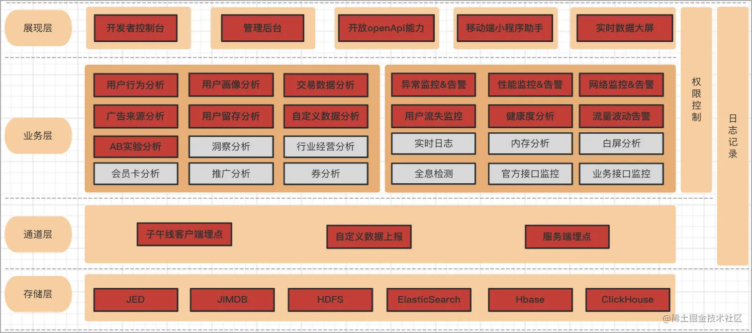 - 从功能领域角度,用户行为分析,交易链路数据分析,用户画像,流失率监控,流量监控等;