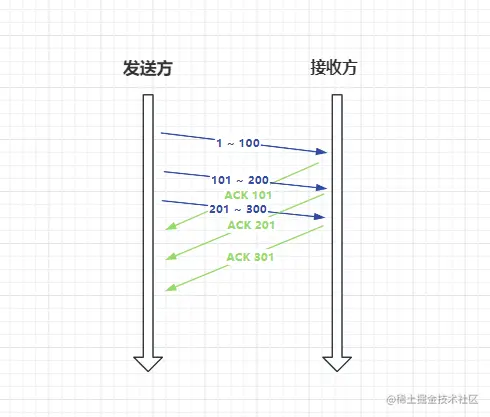 TCP 为了解决这个问题,引入窗口的概念,在窗口范围内的数据包,无需等待上一次 ACK 确认,可以直接发送数据包: