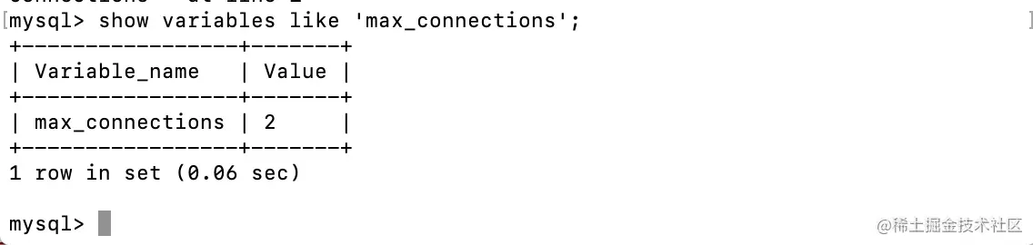 首先查询当前服务端最大连接数:
