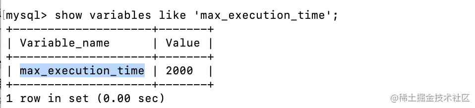 既然目前客户端没法控制慢sql停止,从官网上看了一下mysql服务端的配置参数,发现有一个参数能够控制服务端主动超时停止sql,参数变量:max_execution_time,本地环境验证如下:
