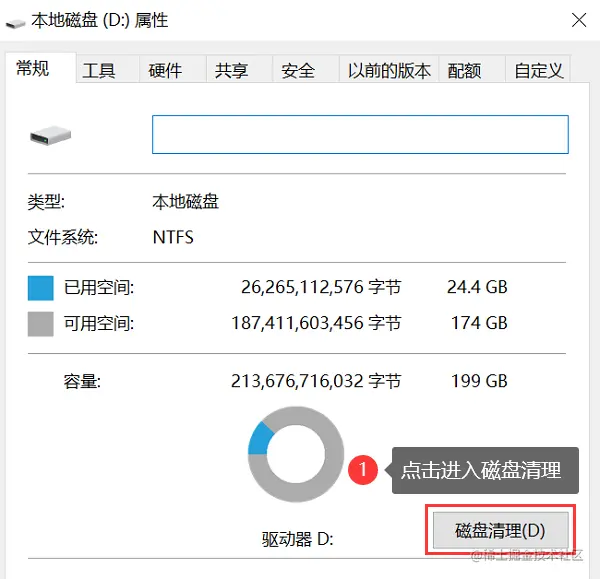 - 右键点击C盘,选择【属性】 ,点击【磁盘清理】 ;